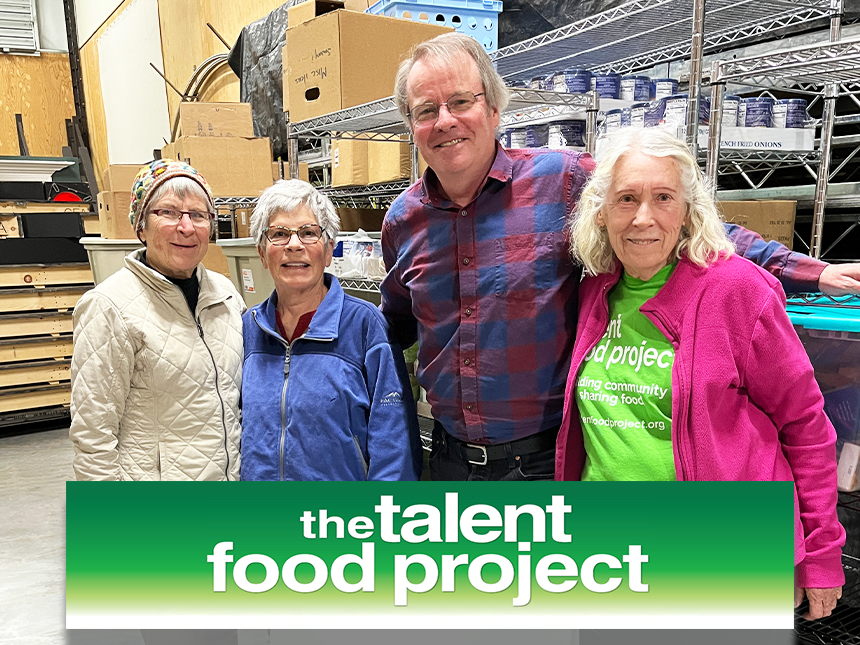 EVERY 2 MONTHS—on the second Saturday of every even month—our Neighborhood Coordinators pick up bags of healthy nonperishable food that neighbors have left outside their front doors. They leave empty green bags for next time, and take all the food to the Talent Food Pantry. It’s that easy!